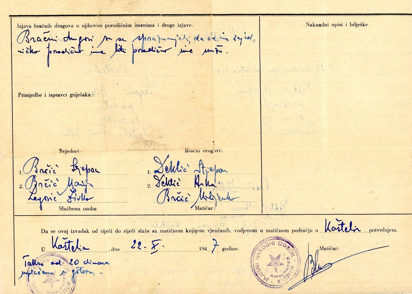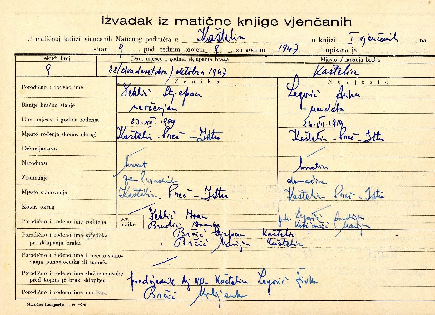Izvadak iz matične knjige vjenčanih